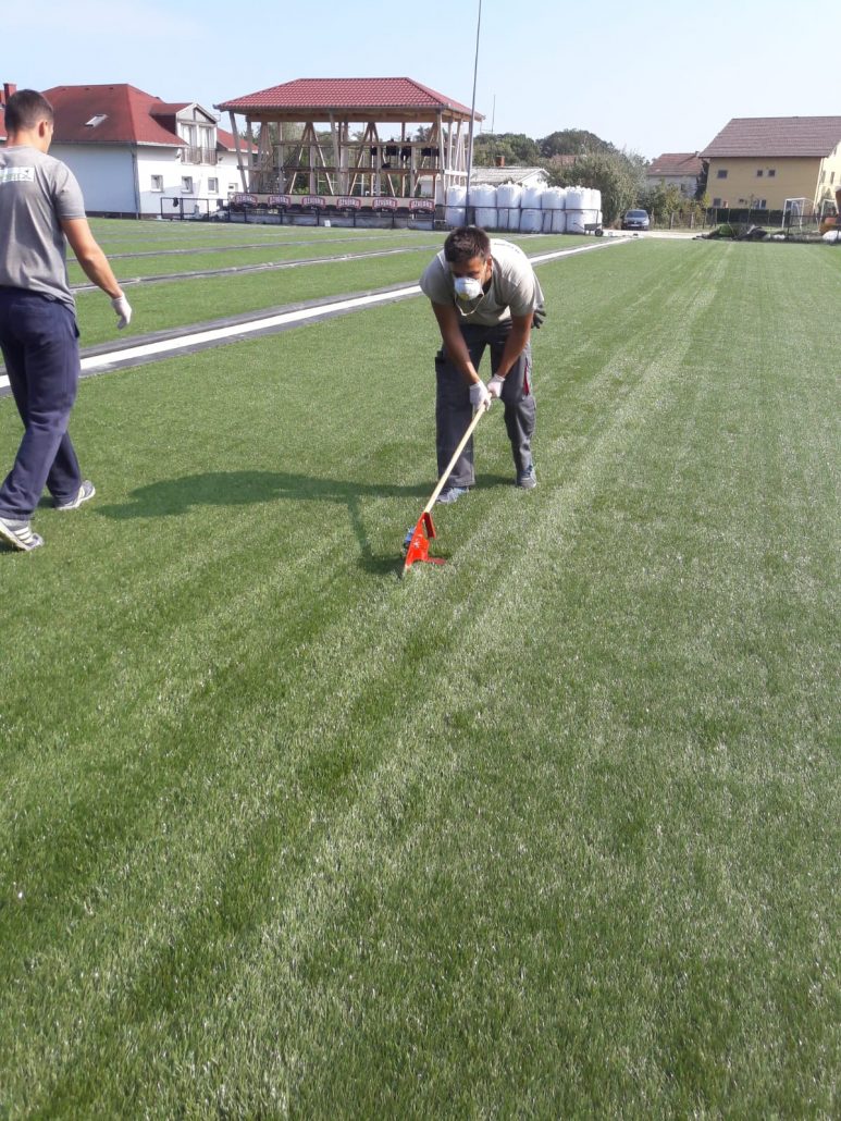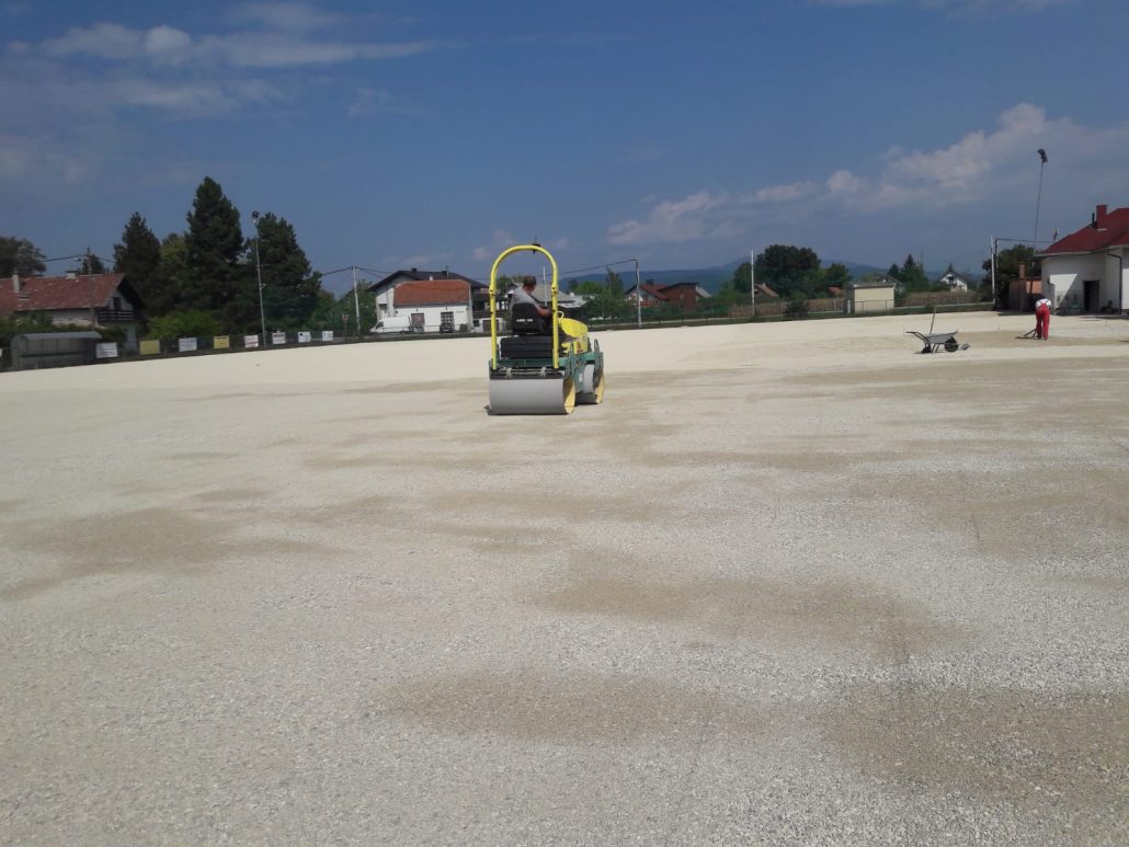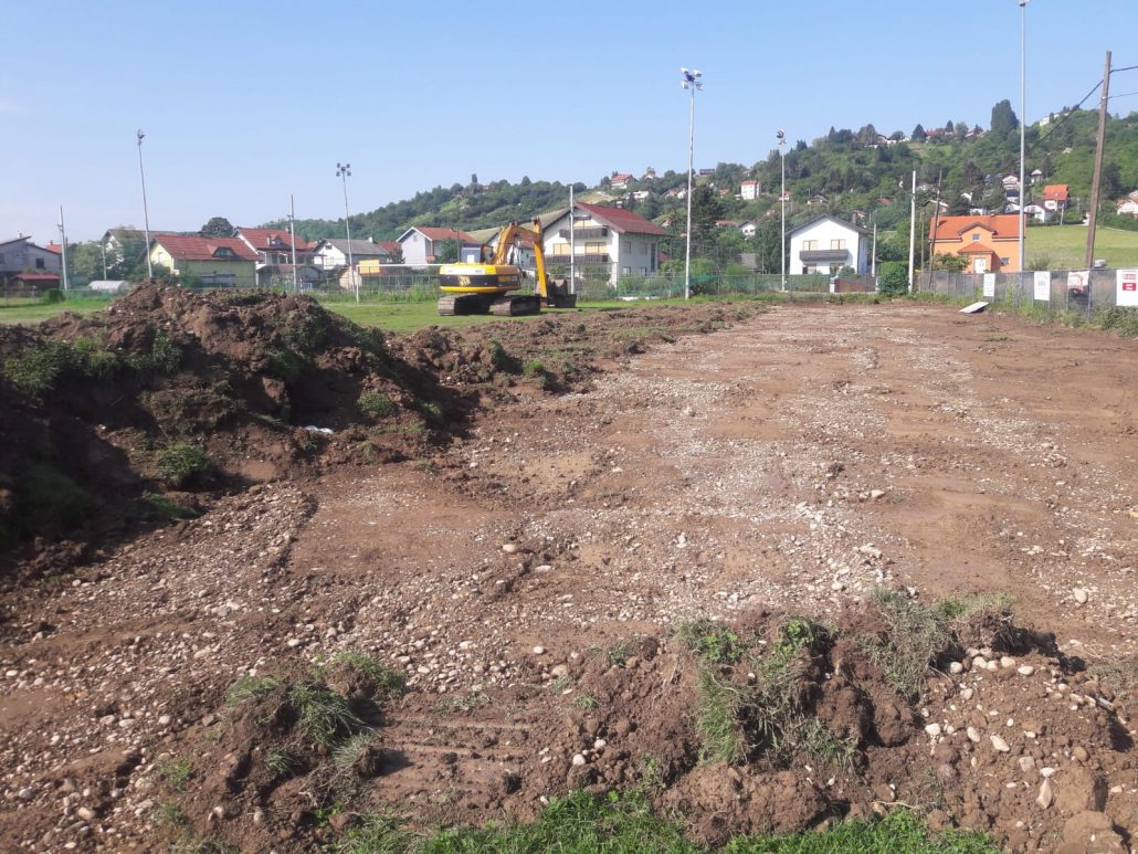 Obavljeni posao: Strojno skidanje nogometnog terena od prirodne trave, iskop materijala te izgradnja podloge za umjetni travnjak. Nabava i instalacija nogometnog travnjaka od umjetne trave te popratnih sadržaja ( Klupe za rezervne igrače, golovi )