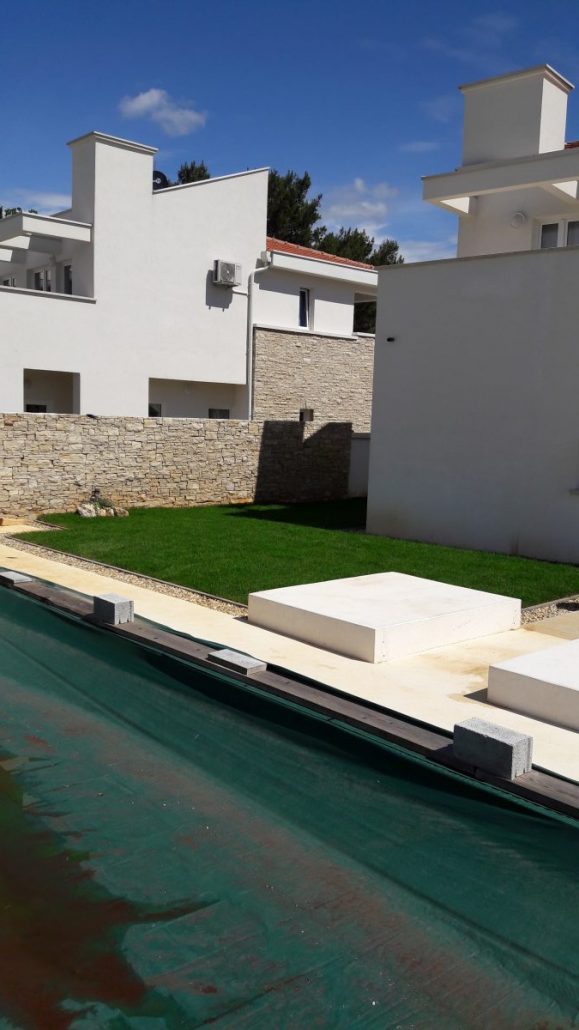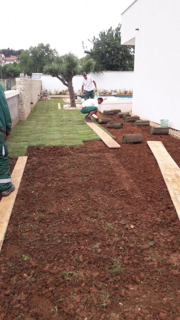 Obavljeni posao: Strojno skidanje starog prirodnog travnjaka, popravak podloge te dobava, dostava i postava novog prirodnog travnjaka u rolama busena